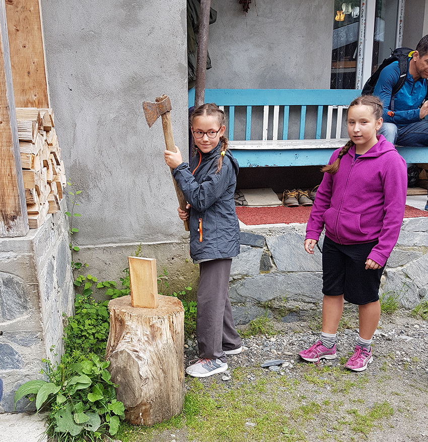В гестхаузе девчонки нашли пилку для ногтей. Потом Коля забрал у них орудие убийство и засадил в полено. Интересно, хозяева смогли его потом вытащить? ;) Никто из нас так и не смог, прям Эскалибур какой-то ;)