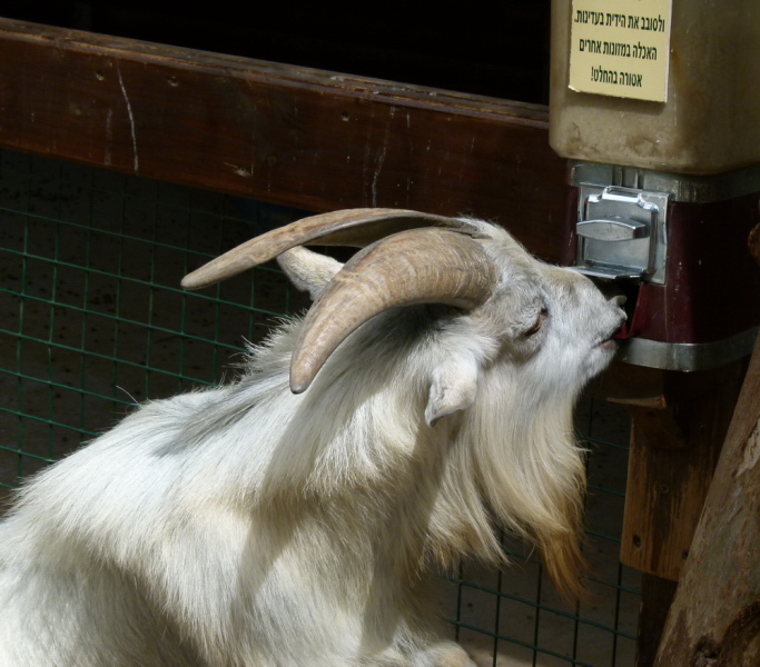 А в козьем загоне был прикол. Дети возжелали купить в автомате еду и покормить животных. Как только мы подошли к автомату, козы уже обступили нас и стали заинтересованно глядеть. А когда Йонька повернул рычаг, то вожак отодвинул Йоньку рогами в сторону и сожрал все в одиночку.