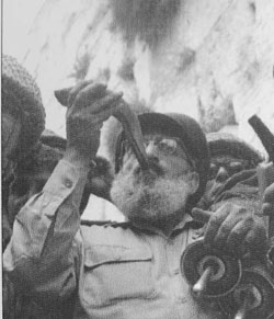 Ваши знания почти такие же блестящие, как действия израильской армии в ходе Шестидневной войны. Поэтому ваш приз – фотография, ставшая символом израильской победы. Раввин Шломо Горен трубит в шофар около Стены Плача