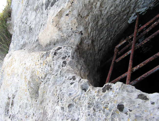 были прорублены пещеры для хранения припасов и сбора воды (на фотографии виден желоб по которому она стекала). После пары десятков метров спуска природа снова резко поменялась - теперь мы шли по лесистому склону. Все хорошее когда нибудь кончается, и мы вышли к пещере Ильи-пророка.