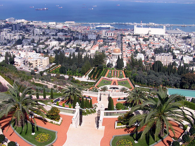 Экскурсия началась на средней террасе Бахайских садов. После объяснений о том что нельзя делать на территории (пить/кушать, курить, жевать жвачку :) Юрий Полторак (прекрасный экскурсовод, большая часть текста с его слов) рассказал вводную о Бахайской вере вообще и о Бахайском храме в частности (это не храм, но об этом ниже). Начало Бахайская вера берет в 19 в, в Персии. В 1844 г. персидкий торговец, назвавший себя Баб (араб. "Врата"), заявил что он послан Господом для подготовки человечества к страшному суду к приходу нового величайшего пророка (заявил он не на пустом месте, а опираясь на пророчества шиитской секты о приходе мусульманского мессии). Подготовка заключалась в привитии новых взаимоотношений между людьми - "любите и уважайте друг друга".