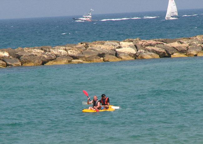На пляже было немного народу, некоторые купались, другие сражались с морскими стихиями. Все как обычно, передний гребет, задний наслаждается видами :)