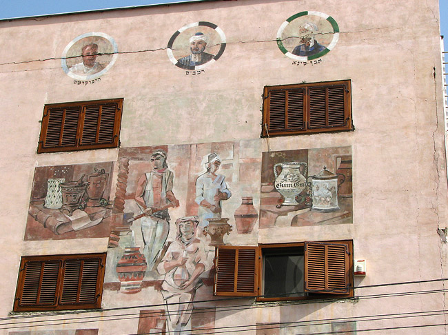 Роспись дома на улице Монтефиори (или рядом с ней). Жаль, что только дома разобрался, кто изображен вверху, стало интересно, что в этом здании такое медицинское размешалось..