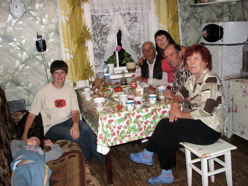 Посидел с дедом Пашей, он рассказал как они строили село в 52 году, они приехали на бульдозере на будущее место поселения. При советской власти жили хорошо, было электричество. В начале 90-х деревообрабатывающая фабрика и леспромхоз закрылись, не стало электричества (которое раньше шло от генератора фабрики), не стало работы. Сегодня в деревне остаются мало молодых пар, уезжают в город, хотя жилье стоит там на порядок больше. А что делать, работы почти нет. Десятилетка пока работает, но похоже это не надолго. В последние годы стало чуть получше. Наконец-то протянули линию ЛЭП (тогдашний мэр купил себе дачу неподалеку), появилась работа на прокладке асфальтовой дороги. Но водопровода (не говоря о канализации) нет, воду развозят по дворам водовозкой. Зато есть интернет :) Серьезно, видели табличку - "Интернет кафе".