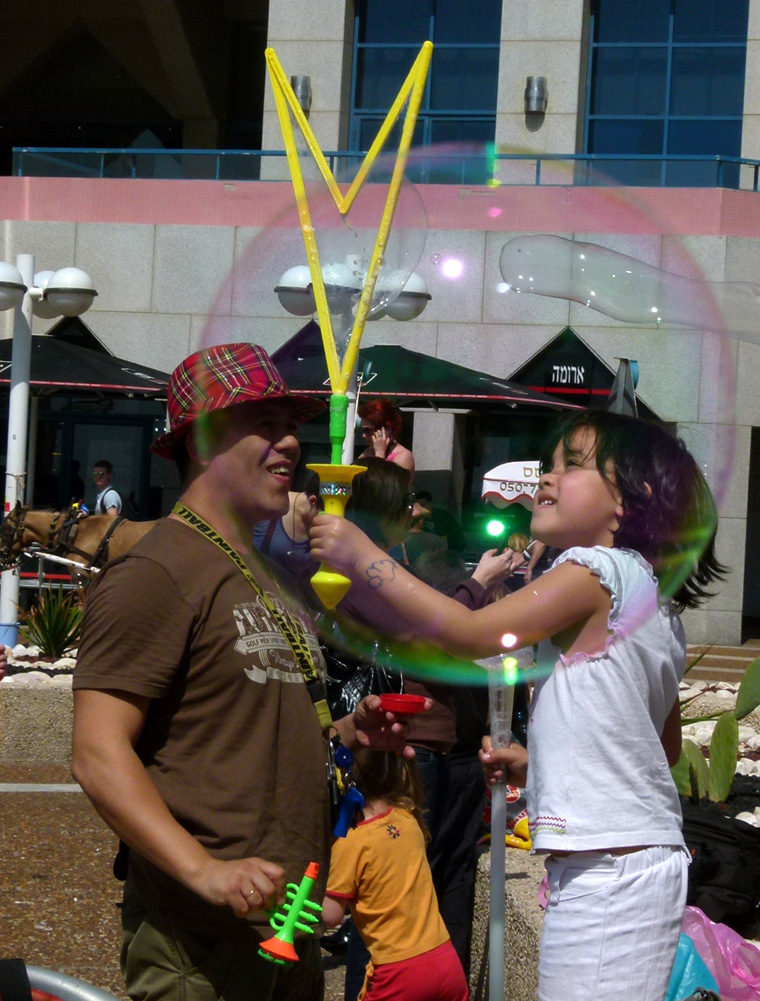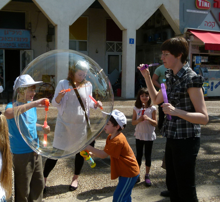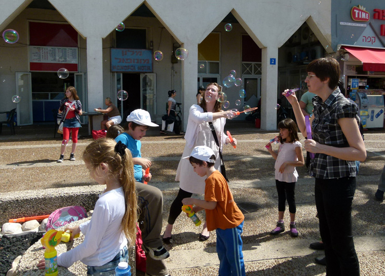 После марафона Тель-Авив опустел, я и не припомню, когда было так мало машин. Так что мы приехали раньше, чем ожидали. В ожидании часа Х дети нарезали круги вокруг фонтана.